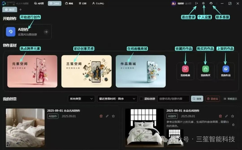 如果说非遗与纹样展区展现的是 “传统之美”,那么 AI 设计专区则呈现了 “科技之力”。在这里,花型生成系统只需输入关键词,就能快速生成数十种风格各异的家纺图案。现场特别接入了最新 AI 模型 nanobanana,让前沿技术与家纺设计的融合直观可感。同学们围着工作人员不停提问,好奇 “机器如何理解美学”,也惊叹于 AI 为设计师带来的效率革命 —— 科技不仅能提升企业效率,更能为家纺设计注入全新的创意维度。