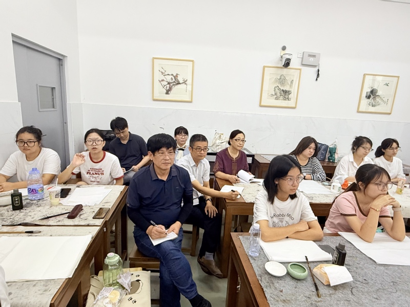 2025年9月29日上午第二节课,美术教育系在美术22(1)班开展“每月一课”教研活动,主题为“树的画法——写意山水中的树韵探索”。本次活动由孙楠老师主讲,旨在通过AI辅助教学的方式,引导学生深入理解并掌握中国画中树的写意画法。教学督导刘燕妮、系主任沈如春、系部部分教师及学生共同参与了此次听课与评课活动。