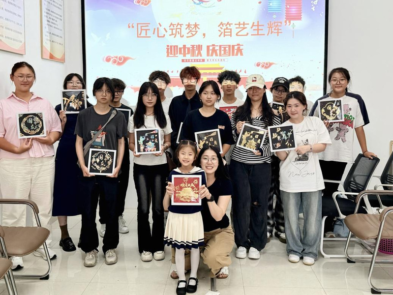 此次活动,不仅让同学们亲身体验了非遗技艺的魅力,更让国庆假期留校的学子们感受到学校的温暖与关怀。大家以金箔为语言,以创作为桥梁,共同为祖国母亲献上了一份特别的生日礼物,展现了美院学子赤诚的爱国之心与蓬勃的艺术朝气。