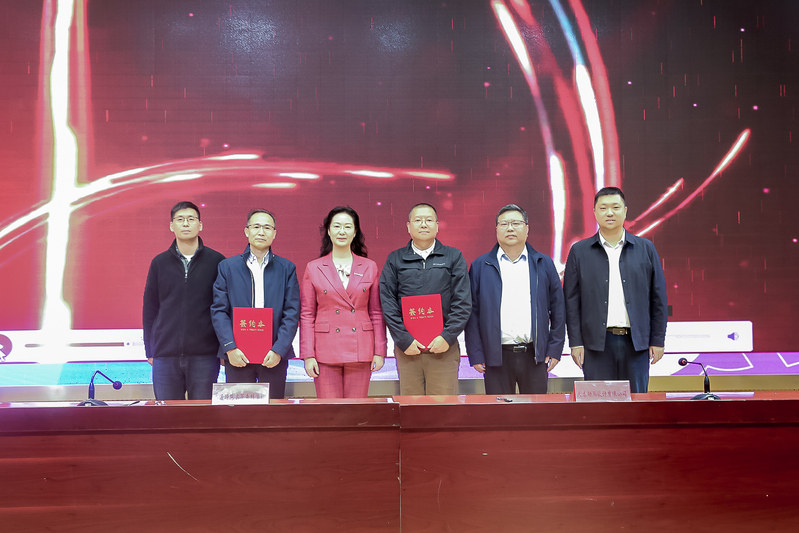 在合作协议签署环节,学校党委书记陈玉君、校长岳峰、市委宣传部文化产业处处长陈东等领导和嘉宾共同上台见证。副校长张松祥与天泰动画总经理张立衍代表双方签署协议,标志着校企合作进入实体化、机制化运行的新阶段。