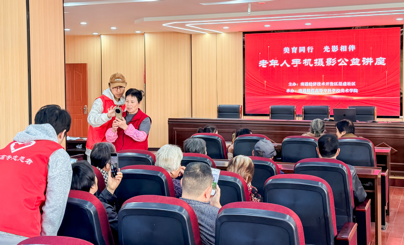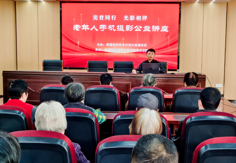 2025年10月29日,时值重阳佳节之际,南通师范高等专科学校美术学院党总支携手南通市新开街道星盛社区党委,成功举办了一场以“美育同行,光影相伴”为主题的老年人手机摄影公益讲座。此次活动旨在弘扬敬老爱老的传统美德,丰富社区老年人的精神文化生活,帮助他们跨越数字鸿沟,用镜头发现和记录生活中的美好。