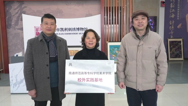 2月5日,南通师范高等专科学校校党委委员、宣传部部长马文娟带队,美术学院党总支书记黄斌斌、院长朱敏、副院长王人佼及教师代表一行,前往江苏凯利绣品有限公司(南通市凯利刺绣博物馆)举行校外实践基地共建揭牌仪式。