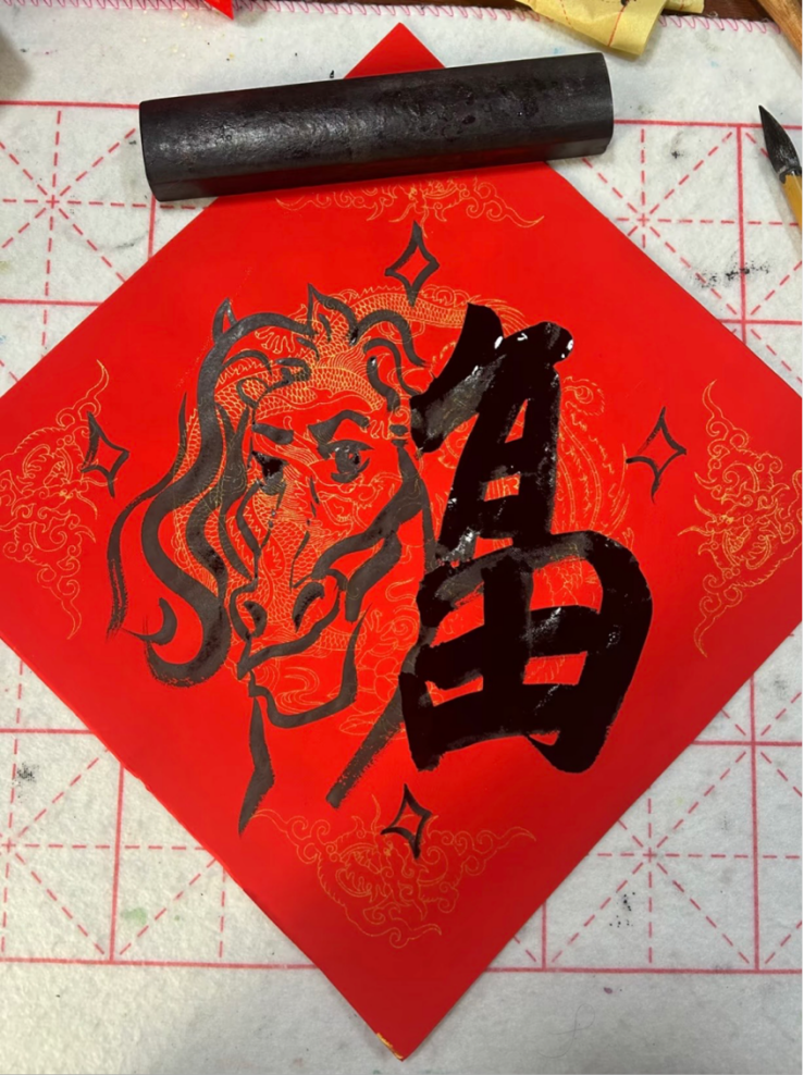 《骏福呈祥》是我书法与手绘结合的小尝试,红宣上福字稳厚,左侧写意马纹添了灵动,让传统福字多了几分新意。愿笔墨间的吉祥,随马年朝气,将福气撒向每个角落。