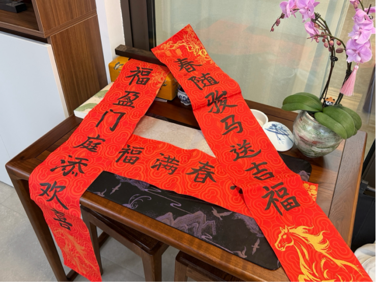 满桌红底春联映着年味,执笔落墨,每一笔都揉进对马年的期盼。愿这门楣上的红纸墨字,能将暖意与红火的祝福,送到家家户户。