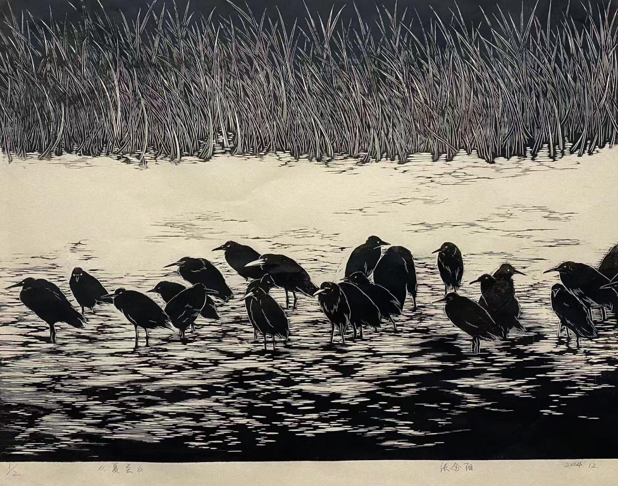 张金阳《夏至》(黑白版画)