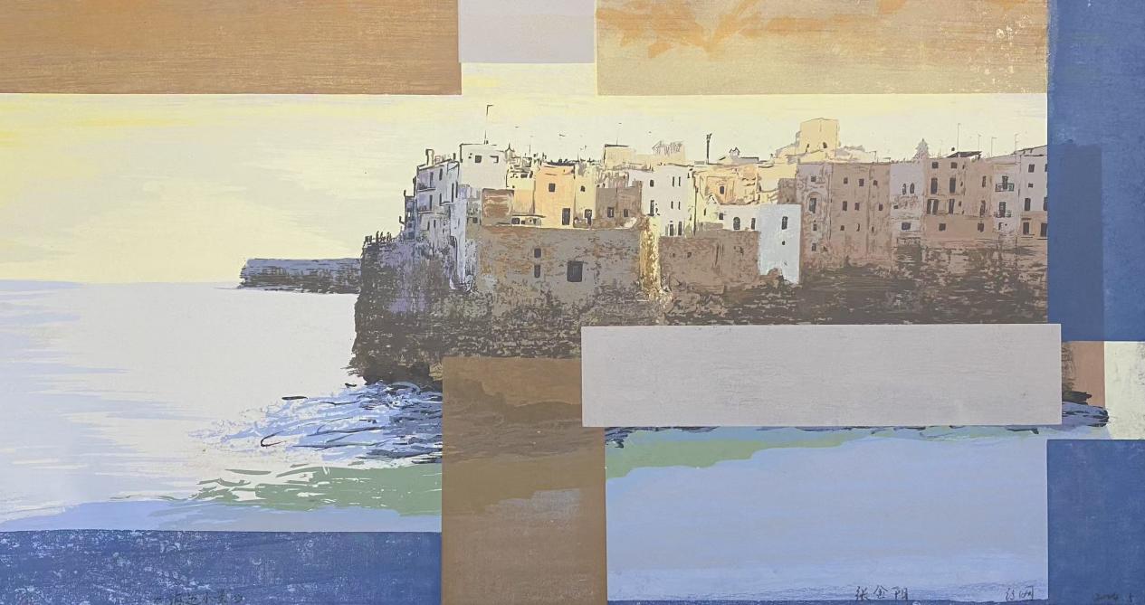 张金阳《海边小景》(丝网版画)