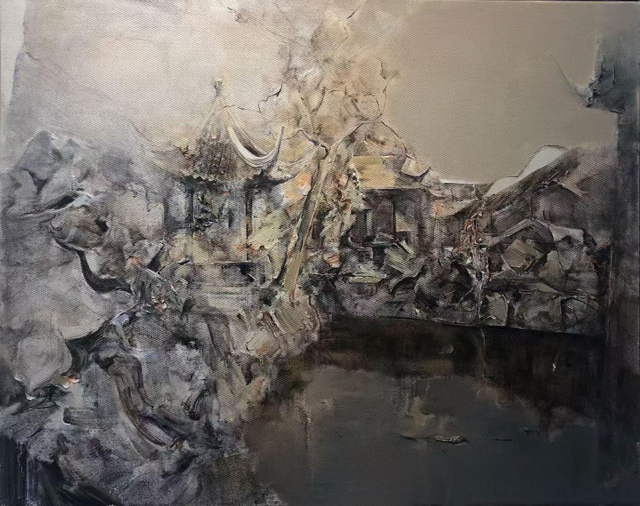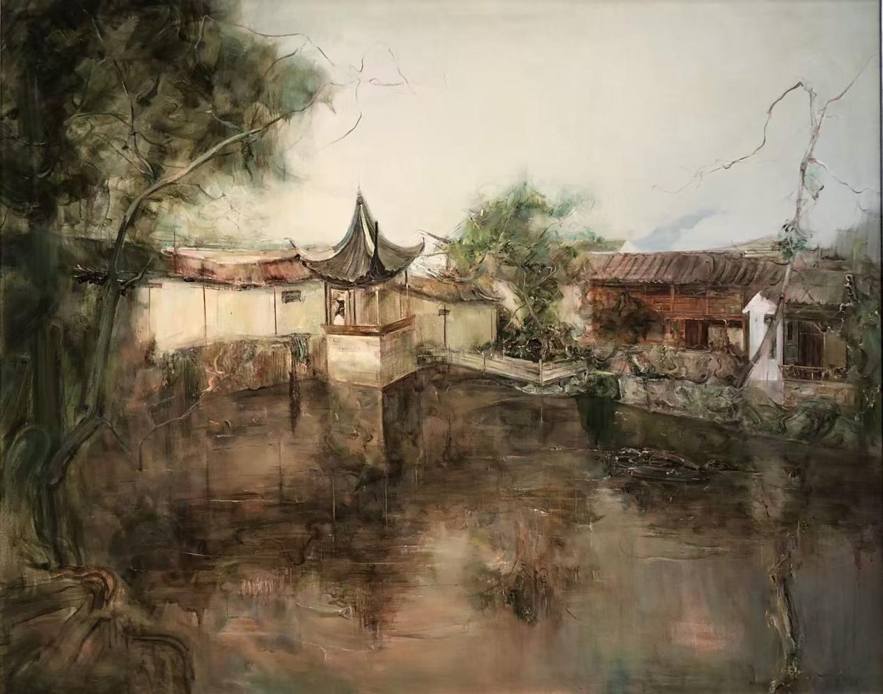 王人佼《江南园林》(油画)