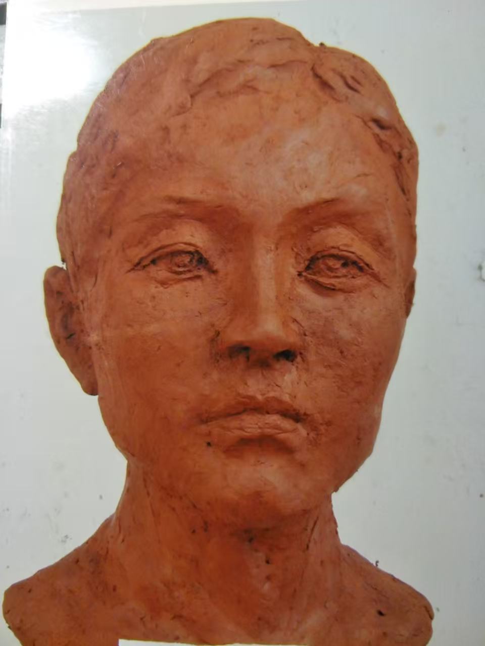 钱钰华 《女同学泥塑头像》(陶艺)